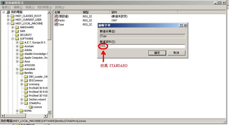 ¤G.¦w¸ËSTAAD.Pro«á´ú¸Õ³s½u¥¿±`¦ýµLªk¥¿±`¨Ï¥Î (³Æµù: Y«·s¦w¸ËWindowsªÌ»Ý¿é¤JLicense) ¸Ñ:±z¥i¯à¦b¦w¸Ë³nÅé«á²Ä¤@¦¸±Ò°Ê³nÅé®É¿ï¾ÜUSL(¤@¯ëÀ³¿ïIndividula Product License ) ¸Ñ¨M¤èªk: 1.Windows XP¤U: ¶}©l¡÷°õ¦æ¡÷¿é¤Jregedit¡÷½T©w ¿ïHKEY_LOCAL_MACHINE¡÷SOFTWARE ¡÷Bentley¡÷STAADPro¡÷License¡÷Type(ÂI¤G¦¸)¡÷±NUSL§ï¬°STANDARD ¡÷ ½T©w , ³o¼Ë´NOK¤F, ¦p¤U¹Ï 2.Windows 7¤U:¶}©l¡÷·j´Mµ{¦¡¤ÎÀɮס÷¿é¤Jregedit¡÷°õ¦æregedit.exe ¡÷Type(ÂI¤G¦¸)¡÷±NUSL§ï¬°STANDARD ¡÷ ½T©w , ³o¼Ë´NOK¤F, ¦p¤U¹Ï ¤T.STAAD.Pro³nÅé°õ¦æ®É¥X²{ERROR in opening ERR file ÀˬdÀɦW¤Î¸ô®|, Y¦³¤¤¤å®É¥þ§ï¬°^¤åÀɦW (ì¦]:¦]windows¥i¯à¦bºI¨úÀɦW¹B§@®É¥X²{error) ¡@ ¥|¤§¤@. STAAD.Pro¤§¥Ã¤[³æ¾÷ª© License¥[¤J¤èªk ¸Ñ:¶}©l¡÷Bentley Engineer¡÷STAAD.Pro V8i¡÷SELECT License Tools¡÷ Bentley SELECT XM License Management Tool ¡÷¤u¨ã¡÷²£«~±Ò°ÊºëÆF¡÷«DSELECT¨Ï¥ÎªÌ ¡÷¤U¤@¨B¡÷§Ú¨ã¦³±Ò°Êª÷Æ_¡÷¤U¤@¨B¡÷¤U¤@¨B¡÷OK *YµLªk¾Þ§@½Ð¤U¸üwww.teamviewer.com «á³qª¾§ÚÌ,§Ų́ÓÀ°±z»·ºÝ¨ó§U¥|¤§¤G. STAAD.Pro Á{®Élicense¤§¥[¤J¤èªk ¸Ñ: 1.½Ð¥ý±N¥»¤½¥qmailµ¹±zªºlicenseÀɮצsÀÉ,(¦b«ü©wªº¹q¸£¦WºÙ¬°*****¤§¹q¸£¤W) 2.µM«á¶}©l¡÷Bentley Engineer¡÷STAAD.Pro V8i¡÷SELECT License Tools ¡÷Bentley SELECT XM License Management Tool¡÷Àɮס÷¶×¤J¡÷§ä¨ìlicense.xml¡ª¡÷OK ¤. STAAD.Pro licenseÄâ¥X¾Þ§@¬yµ{ ¸Ñ:1.¶}©l¡÷Bentley Engineer¡÷STAAD.Pro V8i¡÷SELECT License Tools ¡÷Bentley SELECT XM License Management Tool¡÷¤u¨ã¡÷ÂISTAAD.PRO¡÷ÂIñ¥X ¡÷ÂISTAAD US Std Design Code¡÷ÂIñ¥X 2.¦¹®Élicense¤w©T©w¦b¦¹¹q¸£¤W, n«ì´_®É«hÂIÀ»Ã±¤J§Y¥i¡@ ¤». µLªk¦bSTAAD.Pro¤§Report Setup¡÷Name and Logo¤¤¥[¤J¦Û¤v¤½¥qLOGO ¸Ñ:½Ð¦bSTAAD.PRO2007º¶ ¡÷Congiguration¡÷Files options¡÷Remove REI logo from report¡÷Accept ¸Ñ°£ì³]©w§Y¥i±N¦Û¤v¤½¥q¤§LOGO¿é¤J