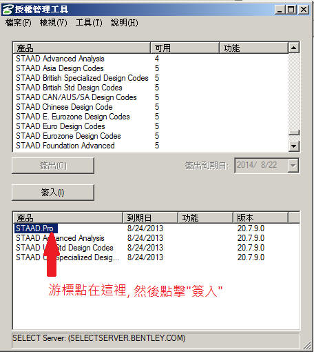 ¶L.³nÅé³]©w¤è± ¤@. STAAD.Proºô¸ôª©©¿µMµLªk¥¿±`¨Ï¥Î(¤§«e¨Ï¥Î¥¿±`) ¸Ñ: ¦³®ÉÔ¨ä¥Lªº¦P¨Æ¦b¨Ï¥ÎSTAAD.pro«á¤£¥¿±`Ãö¾÷®É(¥i¯à©¿µMÂ_¹q©Îª½±µpower off), LICENSE¨Ó¤£¤Î«ì´_, ´N·|¥X²{¦¹ª¬ªp ¸Ñ¨M¤èªk: ¥un§ä¨ì¸Ó¥x¹q¸£(¥i¯àn¦h§ä¨ä¥L´X¥x¦³¥Î¹LSTAAD.Proªº¹q¸£), µM«á¶}±Ò ±ÂÅvºÞ²z¤u¨ã(¦p¤U¹Ï,¶}±Ò¤è¦¡¦p¤U¤@ÃD), §ä¨ì¤U¥b³¡¦³¥X²{STAAD.Proªº¹q¸£ , ±N´å¼ÐÂI¨ì¤U±ªºSTAAD.ProµM«áÂIÀ»"ñ¤J"§Y¥i«ì´_¥¿±`